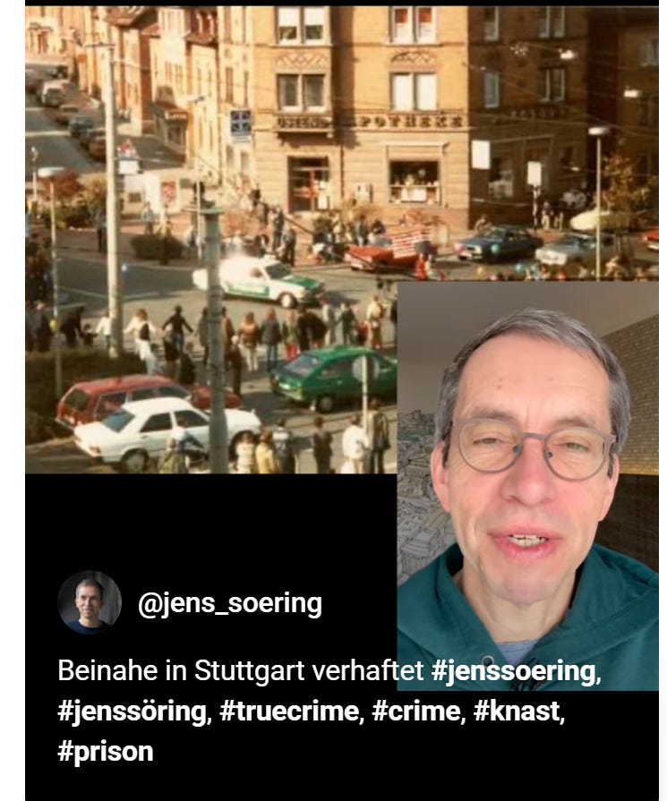 Soering is about to give one of his presentations in Stuttgart, Germany. This was what apparently prompted him to post a Facebook short about the last time he visited Stuttgart, which was during his globetrotting flight from the law in 1985 and 1986.